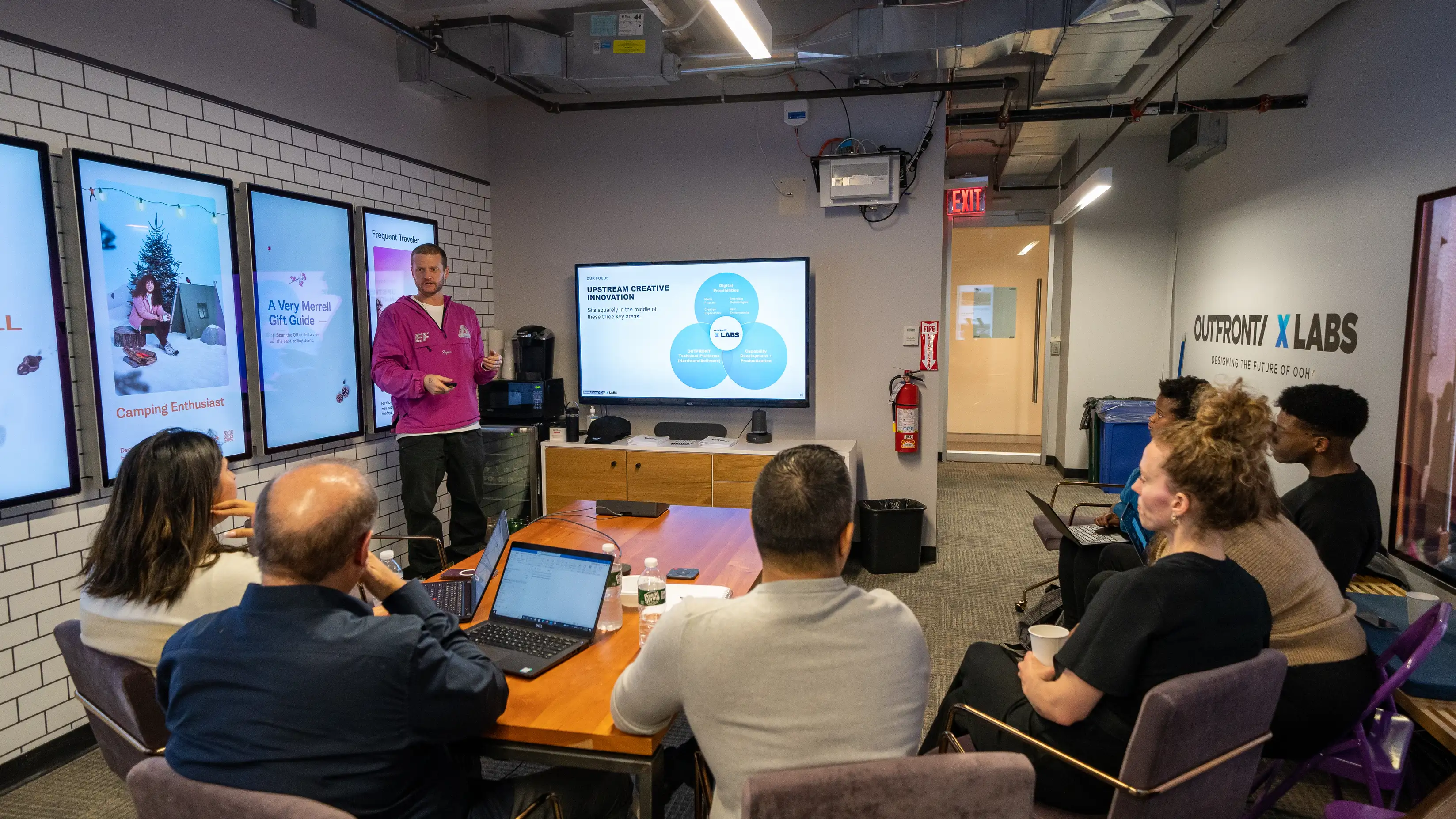 About The LabThe Lab was built to give visitors as place to see what out front is deploying in the NY MTA and other transit authorities across America. It also serves as a content testing facility for the agency and client teams who want to see how their creative will look before deploying in the field, as well as OUTFRONT's own content teams who work on original content programs and Transit Authority customer communications. The Lab is operated by the OUTFRONT XLabs creative innovation group.